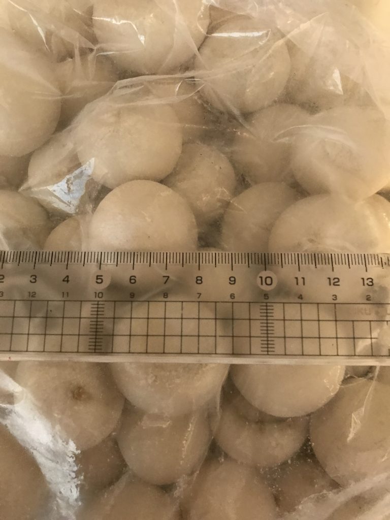 届きました、小さいカレーパン。見た目団子ですが、中にカレー入ってます。直径3-4㎝ですので、小ささが分かると思います。