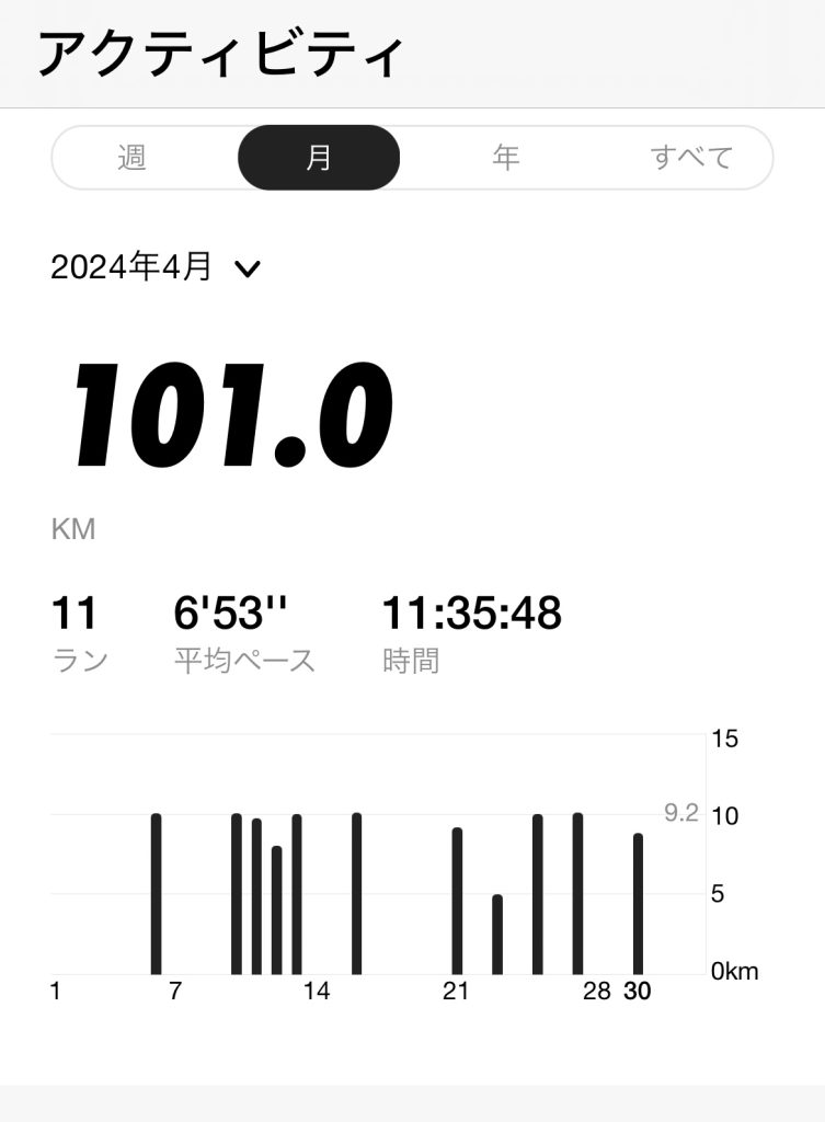 ちなみに1月は91㎞、2月は52㎞、3月は54㎞でした。